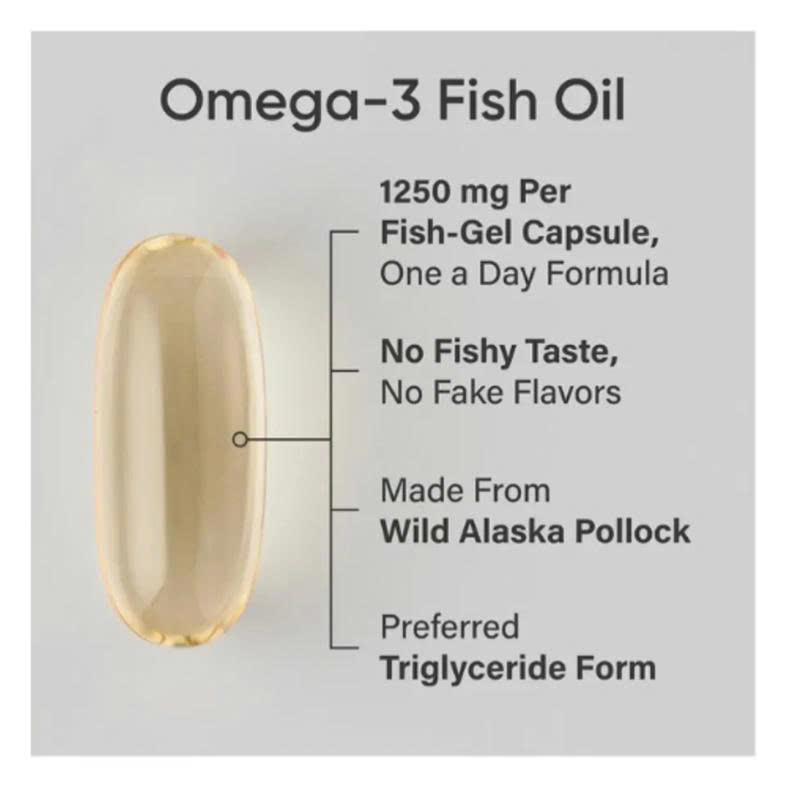 2. Thành phần: Mỗi viên chứa 1250mg dầu cá thiên nhiên với tổng hàm lượng Omega-3 lên đến 1055mg gồm EPA 690mg và DHA 310mg giúp mang lại hiệu quả tối ưu. Thành phần bổ sung thêm vitamin E tự nhiên giúp ổn định dầu cá và chống oxy hóa. Sản phẩm không chứa gluten, không biến đổi gen (Non-GMO), được kiểm định chất lượng bởi bên thứ ba và đảm bảo độ tinh khiết cao.