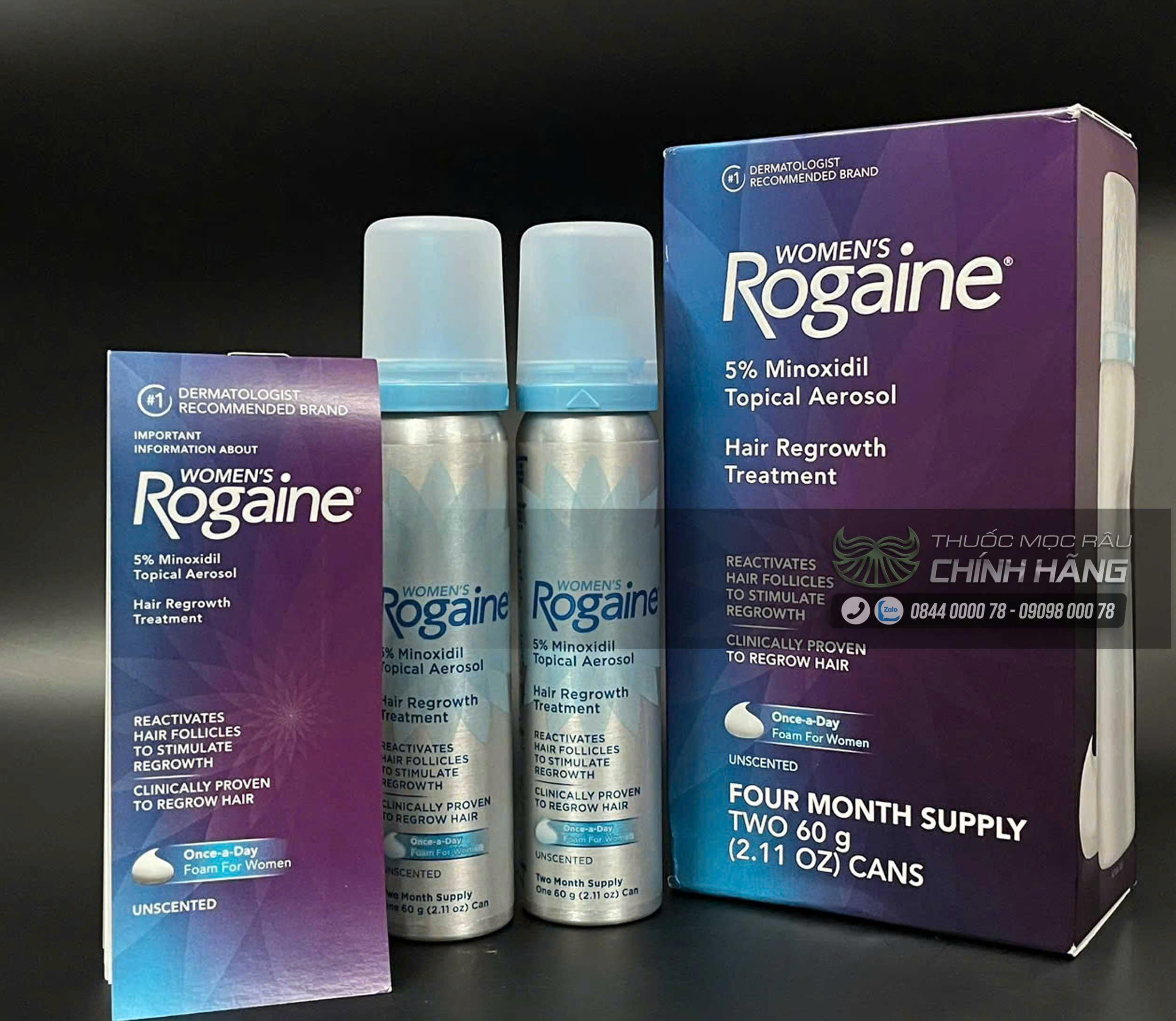 Women’s Rogaine 5% Minoxidil là sản phẩm hỗ trợ mọc tóc số 1 tại Mỹ, được nghiên cứu dành riêng cho nữ giới gặp tình trạng rụng tóc, thưa tóc, hói đỉnh đầu do di truyền, stress hoặc sau sinh. Với công thức Minoxidil nồng độ 5%, sản phẩm giúp kích thích nang tóc, kéo dài chu kỳ phát triển và tăng mật độ tóc chỉ sau vài tuần sử dụng.