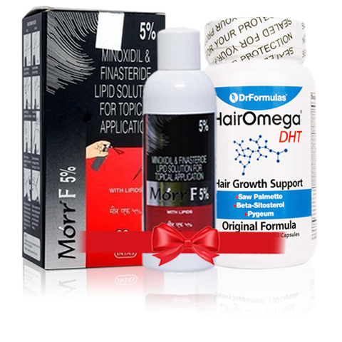 Morr-F khác Morr là có ký hiệu F (hàm lượng có 5% và 10% minox), chứa 2 hoạt chất chính là Minoxidil và Finasteride (DHT Blocker) được cục FDA của Hoa Kỳ chứng thực có hiệu quả cao trong việc giúp mọc tóc. Nếu bạn lo ngại việc finasteride có tác dụng phụ thì yên tâm rằng, 0.1%w/v là 1 con số rất nhỏ và qua đường bôi, không như finasteride viên uống 5gm được uống trực tiếp (kê toa)