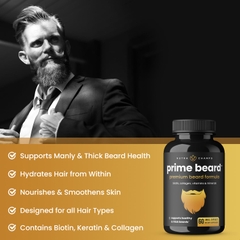 Prime Beard là một chất bổ sung tăng trưởng râu cao cấp, giúp bạn có một bộ râu dày hơn, đầy đặn hơn và nam tính hơn. Prime Beard bao gồm hơn 20 loại vitamin, protein & khoáng chất thiết yếu bao gồm Biotin, Collagen và phức hợp Prime Beard độc đáo để mọc tóc khỏe mạnh hơn.